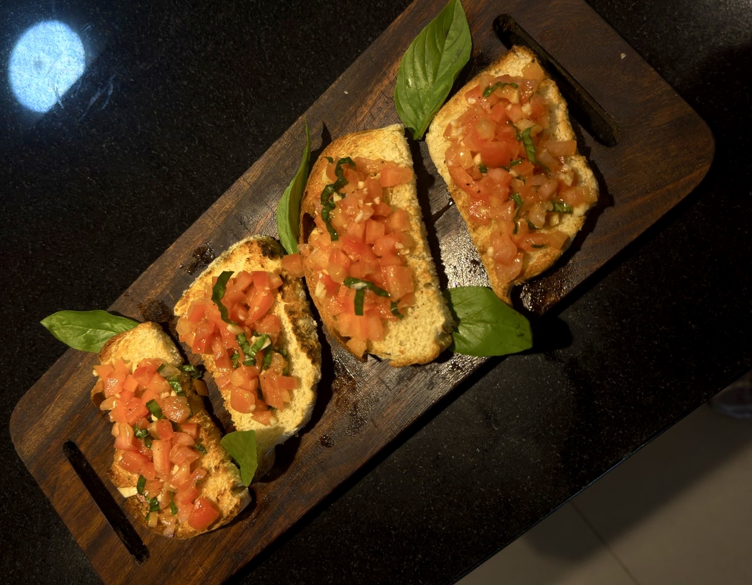 A traditional Italian flatbread, baked to golden perfection with a light, airy texture. Topped with a drizzle of extra virgin olive oil, sea salt, and fresh rosemary. Soft, flavorful, aromatic.